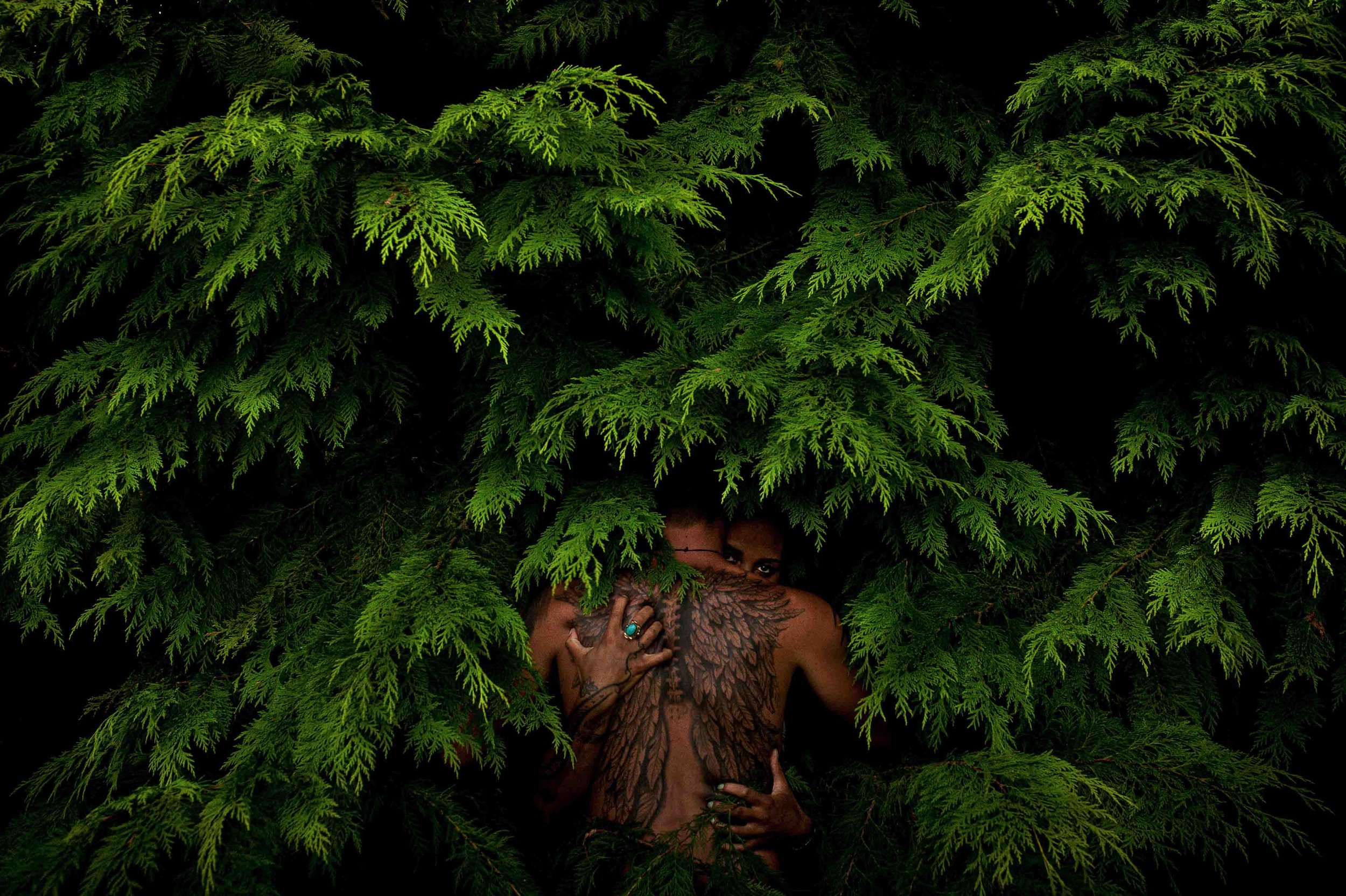 On the edges of a festival I was documenting, a dripping tree-line offered itself as shelter, backdrop, and prop. This became a stage for a photo series to emerge—a place for the shy, the strong, and the untamed to step forward and express.